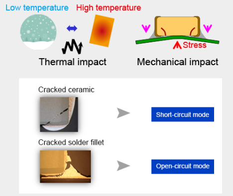 - MLCC is cracked by temperature/mechanical impact